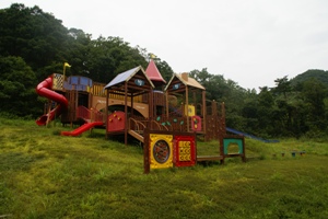 キャンプ場の一番奥に突然現れるご立派な遊具。雨と蚊によりあまり遊べなかったのが残念。 |