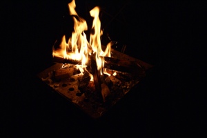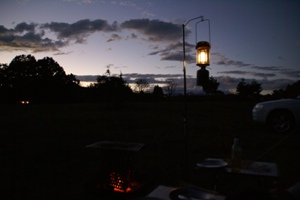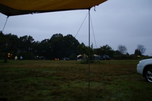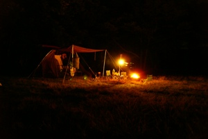 夜お邪魔したらなぜかタープ内に雨が(笑)。 |