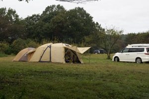 晴れたにもかかわらず雨の前日よりもテントが減ったキャンプ場。