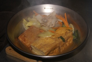 | 初日は鍋。いつものBBQはタープ内では無理。。 |