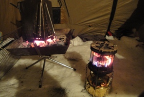 雪の上で火を焚いてても溶けないもんですねえ。 |