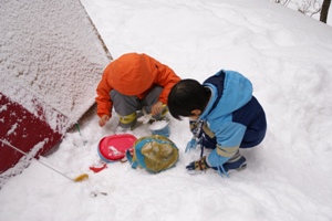 サイトに戻って雪遊び。