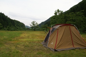 キャンプサイトは写真の場所ではないらしいのだが、草地の広場に設営。 |