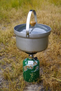 ツーバーナーを忘れたためシングルバーナーで炊飯。