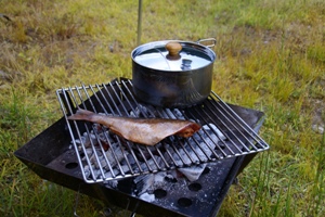 燃え残った木がかまどに転がっていたので収集は楽。 |