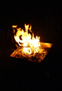 キャンプ場で拾った木々で焚き火。