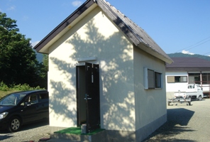 | 管理棟兼炊事棟。裏にゴミ捨て場があり、洗濯機もあったが洗濯機は使えるのかね? |