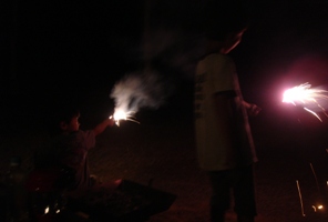暗くなるのを待って花火。