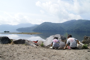 キャンプ場写真へ 滞在記 “今年の夏キャンプはどうするの?”“うーん、北海道は無理かなあ。”“・・・”“近場で 避暑キャンプかなあ。あ、組長は北海道いくらしいよ。”“・・・” 第1日 去年、予約したフェリーをなくなく解約したので来年こそはと思っていたのだが3.11の影響もあり、 残念ながら長期の夏休みをとる余裕は今年も無し。3泊4日だと遠出するのもなんなので中禅寺湖畔の 菖蒲ヶ浜に避暑キャンプへ行くことに。夏はやっぱり山ですわ。 出発前日に仙台から妻子が郡山へ移動。翌朝は早めに出発し、9時半にはキャンプ場に到着。 今年の夏は猛暑で節電令とあいまって例年以上に暑い夏なので標高1200mm以上の中禅寺湖は魅力的な地。 この日も郡山の最高気温は30℃以上だったが到着時の気温は23℃程度。やはり涼しくていいね。 ただ、既に湖畔のロケーションの良いところはテントで埋まってしまっていたため設営場所に悩む。 どうせ湖畔が見えないならと運搬距離が比較的短い川沿いの場所に設営。ここでも普通のキャンプ場としては まずまずのロケーションではあるんだけどね。 設営終了後、戦場ヶ原に行き赤沼茶屋で昼食を食べてからビジターセンターから出ているバスに乗って 中禅寺湖畔の千手ヶ浜へ。マイカー乗り入れ禁止の道路のため観光客も少なく、浜をゆったりと満喫。 正面に男体山を望むロケーションがいいね。バスでビジターセンターに戻り、奥日光湯元の湖畔の宿 湯の屋で 入浴。まわりを歩いていくつかのぞいたのだが湯元はどこも入浴料が高いね。湯の屋は設備は古いが源泉100%の にごり湯で温泉風情はあり。熱くて子供ともどものんびり入ってられなかった。温泉でさっぱりしてから サイトに戻り夕食。この日はモチピザ。ビール片手に美味しく頂き、その後は朝も早かったので早々に就寝。 第2日 朝は6時頃起床し、まだ静かなサイトを散策。快晴で静かな中禅寺湖も朝日に輝く男体山も素晴らしい。 湖畔がテントで埋め尽くされていて浜に出られるところがほとんどないのが残念ではあるが。。 カヌーを持ってきている人もいて、ゆっくり漕ぐ姿がうらやましい。ハムサンドの朝食を食べた後、 キャンプ場にパンフレットがあった群馬の丸沼高原へ。 丸沼高原でまずはサマーリュージュに挑戦。リフトに乗って中腹まで登ってから子供を乗せてひと滑り。 それなりに距離もあってなかなか面白かった。リュージュ乗り場の周りはキャンプ場になっていて、 スキー場のゲレンデが夏はキャンプ場として使われているよう。若干斜めになっている場所にも設営されて いるようだったが、ゲレンデ上がサイトというは珍しいのでは。続いてゴンドラに乗って日光白根山の 標高2000m地点のロックガーデンまで一気に上昇。日光白根山の山頂まで登る準備は何もしてなかったので、 ロックガーデン周辺の散策路をひと歩き。あまり起伏もきつくない道を1時間ほど歩いて森林浴を楽しむ。 ロックガーデンには足湯があり、1時間歩いた足を癒してから下山。 朝から遊んでお腹も減ったので高原の駅丸沼で昼食タイム。大盛況で座るところもないぐらいだったが、 食べたもち豚冷しゃぶ丼は美味しかった。遊んでお腹も満たされたところでサイトへ。 午後はサイトでのんびりしようかと思ったのだが、時間を持て余し、近くの龍頭ノ滝まで散歩。 前回来た時は茶屋のところでしか滝を見なかったのだが、今回は茶屋から散策路を登って滝全体を見学。 前回は気付かなかったが長さ210mの大きな滝だったんだねえ。 滝見物から戻ってゆるゆると夕食の準備。子供たちは疲れも感じさせずに湖畔の浜で遊びまわってた。 一日中動き回って元気なもんです。この日はまだ明るい17時過ぎから焼鳥と焼肉を始め、暗くなってきた 頃には満腹。その後雷雨に見舞われ、この日も早々に就寝。早寝早起き、まったくもって健全です(笑)。 第3日 この日も朝6時頃には起床。夜降っていた雨も上がり、この日もさわやかな朝。朝食におにぎりを食べた後、 何となく足尾銅山へ。鉱害で禿げ山だったという足尾銅山だが今は緑いっぱい。足尾銅山観光でトロッコ列車に 乗ろうかとも思ったのだが、嫁さんが以前から興味のあったわたらせ渓谷鉄道があるのでそちらに乗ることにする。 ローカル列車らしく無人駅で周辺にも特に何もない足尾駅で電車を待つこと30分以上、ようやく来た電車は 期待を裏切らない風情たっぷりの一両編成の車両だった。カメラを構えて列車を撮る人もいて、その筋の方には 絵になる鉄道なのかと。 わたらせ渓谷鉄道で温泉が駅に併設されている水沼駅まで1時間ほど乗車。水沼駅で昼食&入浴をすませて 再び電車に乗って足尾駅まで戻る。通洞だったか途中で乗ってくるガイドさんは行きも帰りも同じ。 車窓の景色を眺め、車内販売のアイスを食べ、まさにわたらせ渓谷鉄道を満喫した一日。切符がパンチで 穴開けて切られるところなんて今時なかなかないんじゃなかろうかと。