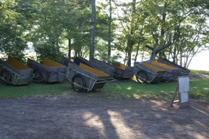 | 荷物は駐車場からリヤカーで運ぶ。混雑時はリヤカー待ちの行列も。 駐車場から結構距離あるので雨降ってるときにリヤカーで運ぶのはつらそう。 |