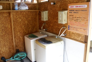 | 洗濯機は管理棟でカギを借りてから使用するので、管理棟があている時間でないと使用できず。 |