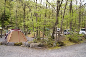 | 管理棟前のBサイト。静かな林間サイト。 |