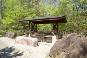 | 夏場はプールになるらしい場所。大武川にもキャンプ場横から降りられるので好みで水遊び場を選べそう。 |