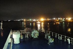仙台港から“きそ”に乗って出発。船の汽笛が鳴り、旅情満点。