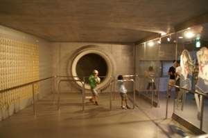 キャンプ場で入館券がもらえる風の館で、強風体験。