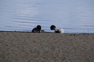 浜辺で遊ぶ子供たち。