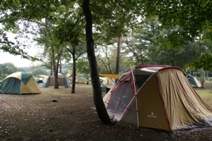 雨に濡れたキャンプ場。