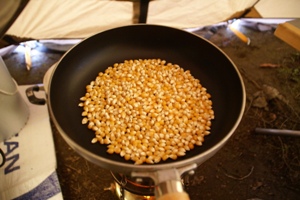 | ポップコーンのもと?をフライパンに入れて・・・ |