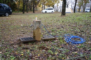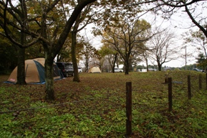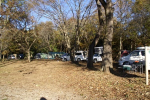 キャンプファイヤー場となっているところがフリーのオートサイト状態。 本来のキャンプ場は管理棟前のスペースみたいで、車乗り入れ不可。 |