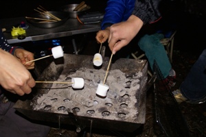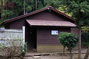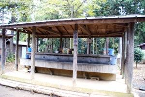 炊事棟。キャンプファイヤー場からはちょっと遠いが洗剤等が準備されている。 |