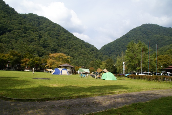 山奥にある芝生のフリーサイトキャンプ場 庚申山登山の拠点にも |