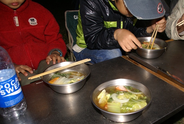 ようやく夕食タイム。秋の夜に暖かいスープが美味しい。