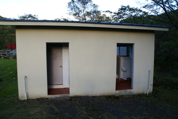 | タイマグラキャンプ場の管理棟。トイレもここ。ぽっとんトイレだが状態はきれいで臭いも大丈夫。 |