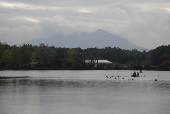 | 上野沼越しに昨日登った筑波山が見えた。 |