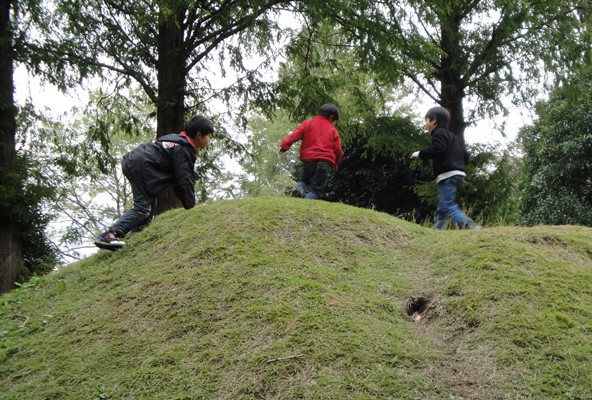 | キャンプ場の広場で遊ぶ子供たち。元気やね〜。 |