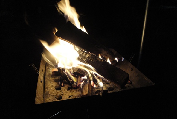 | 夕食後は焚火でのんびり。 |