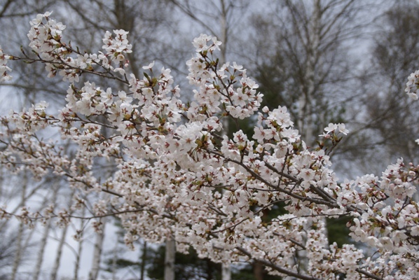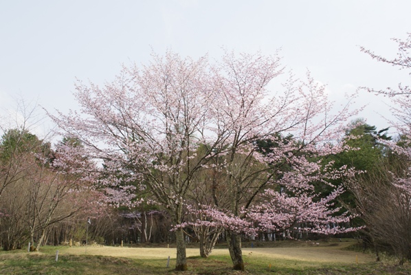 | 組長一家を待つ間場内を散歩。標高1270m、GWが桜の時期のようで。 |