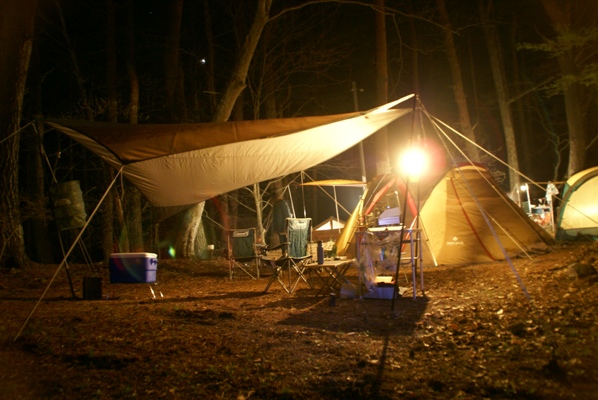 | 満員のサイトの隅に確保したスペース。予約不要のフリーサイト≒陣取り合戦になりますわな。 |