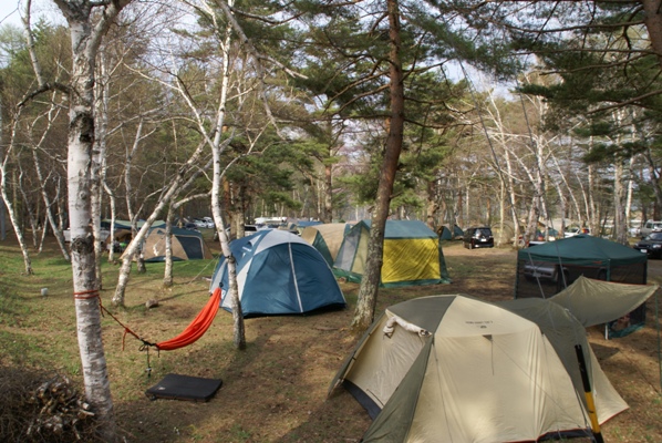 | 第1キャンプ場の上部。斜面が多いので結果的に密集できず混雑感が出ない? |