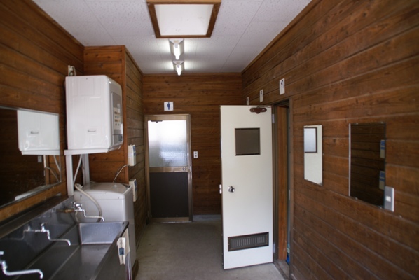 | 管理棟内のサニタリースペース。ここのトイレは問題なかったが第1キャンプ場からは遠い。 |