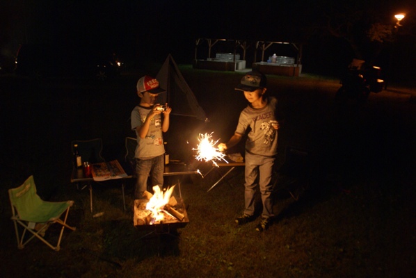 日が暮れるのを待っていた子供たちの楽しみは花火。