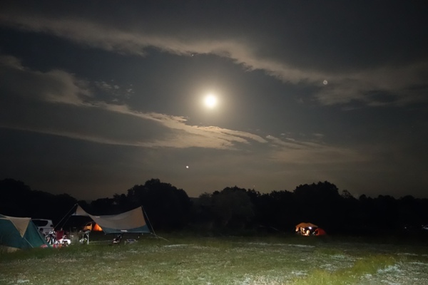 日も暮れて月が出てきました。 |