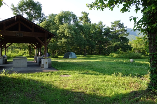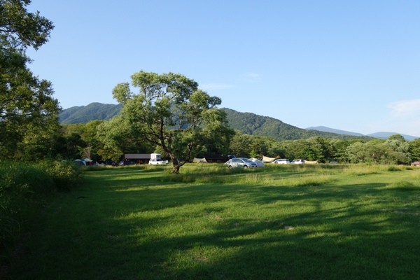 草地のフリーサイトでD〜Fサイトは車乗り入れ可。 |