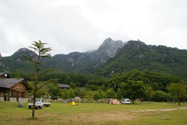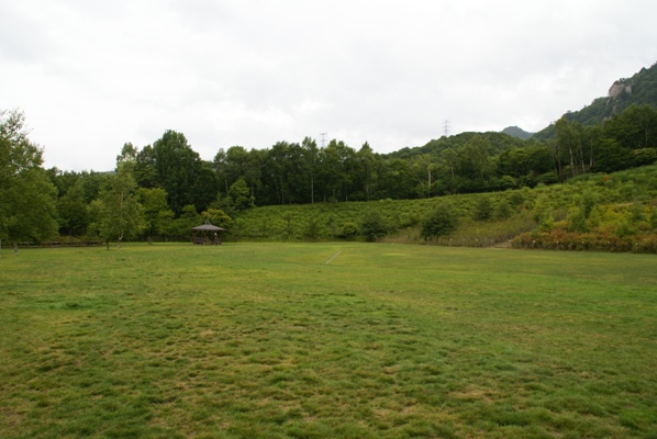 キャンプ場は草地のフリーサイト。今回は空いているので車もサイトに入れたままでいいとのこと。 混雑時は荷物下ろしたら駐車場へ移動かな。 |