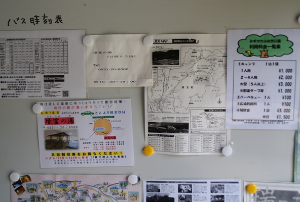 テントはサイズによって料金が変わる。温泉は増富の湯が近いとのこと。 |