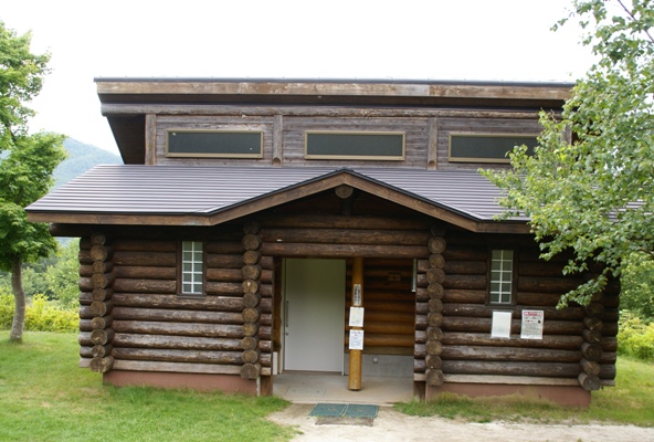 管理棟。売店、レストハウス、トイレ併設。売店は結構充実だが山バッチはなかった。 |