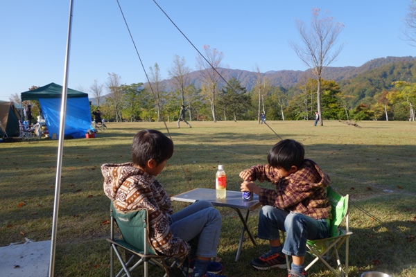 撤収して戻ってくると・・・親の心配をよそに仲良く遊んでた。 |