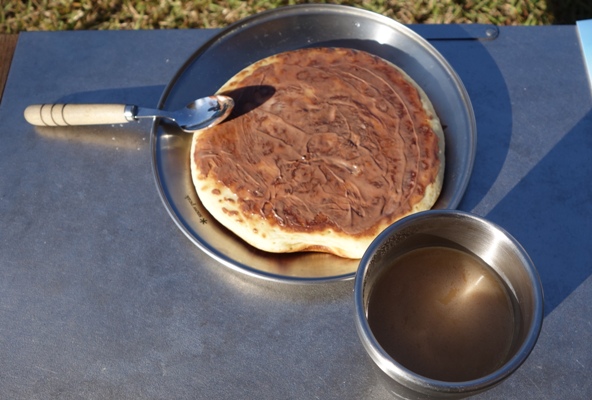 朝食〜いつものホットケーキとソーセージ。 |