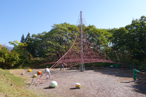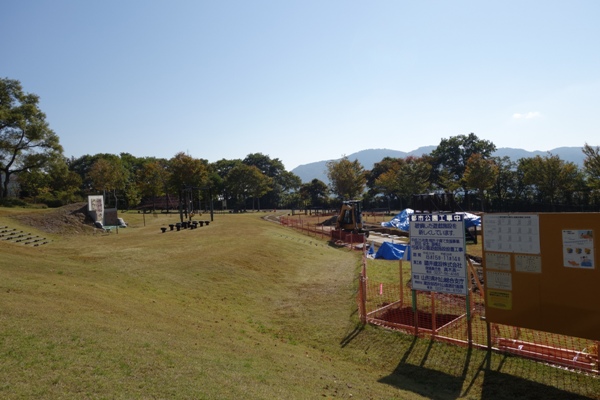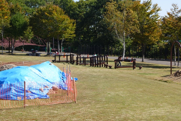撤収作業中に子供たちを遊ばせるために子供達を遊具のあるところへ。一部補修中でした。 |