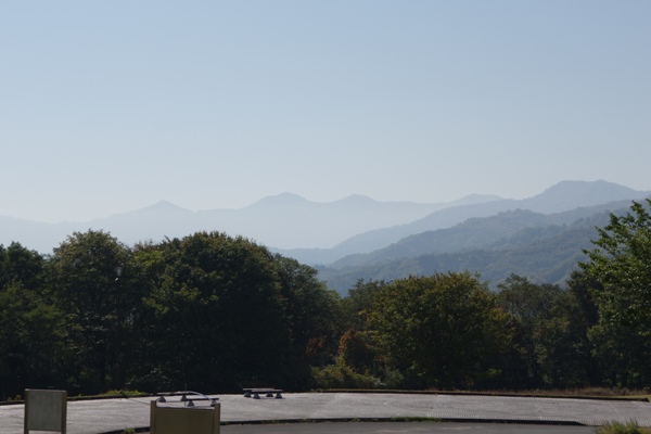 姥ヶ岳と湯殿山。この日歩いてたら見晴らし最高だったろうなー。 |