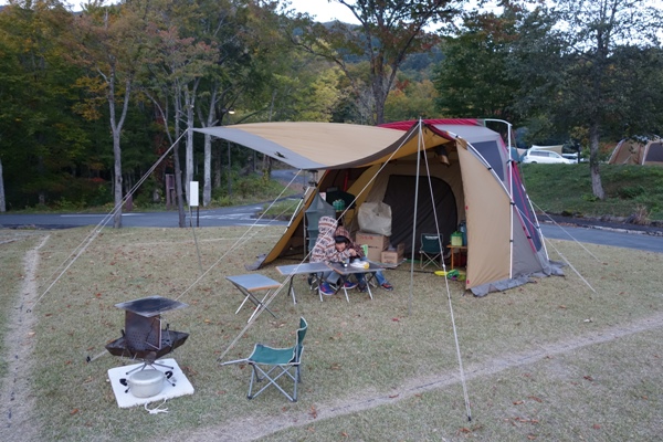 場内を散歩。キャンプ場も色づいてますねー。 |