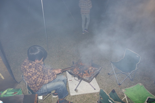 焚火・・・場内がきれいすぎて焚き木がない。葉っぱは煙いだけなので早々に終了。 |