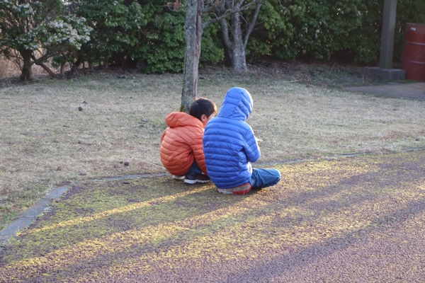 陽の光を浴びる子供たち。“あったかいんだから〜” |