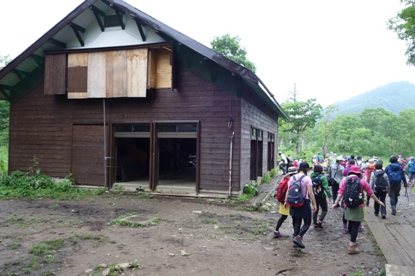 こちらは山ノ鼻小屋。混雑期の三連休だったので大賑わい、山の中ですが寂しさをかけらも感じない キャンプ場でした。日によっては全然印象が違うことでしょう。 |
