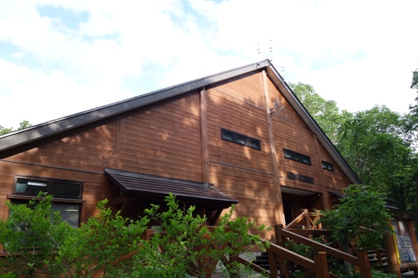 キャンプ場横にあるビジターセンター。尾瀬の自然を紹介していて、朝夕イベント(散策会やスライドショー)も やってました。 |