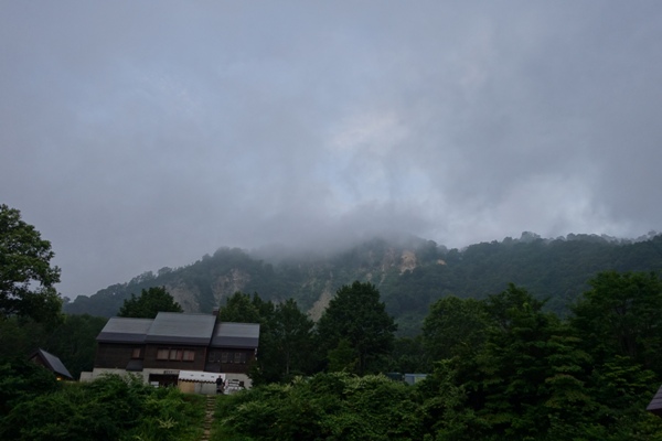 翌朝〜どんより曇り空。もともとキャンプ場からは雨飾山山頂は見えないよう。朝6時半に出発。 13時半にキャンプ場に戻ってきて郡山へ。 |